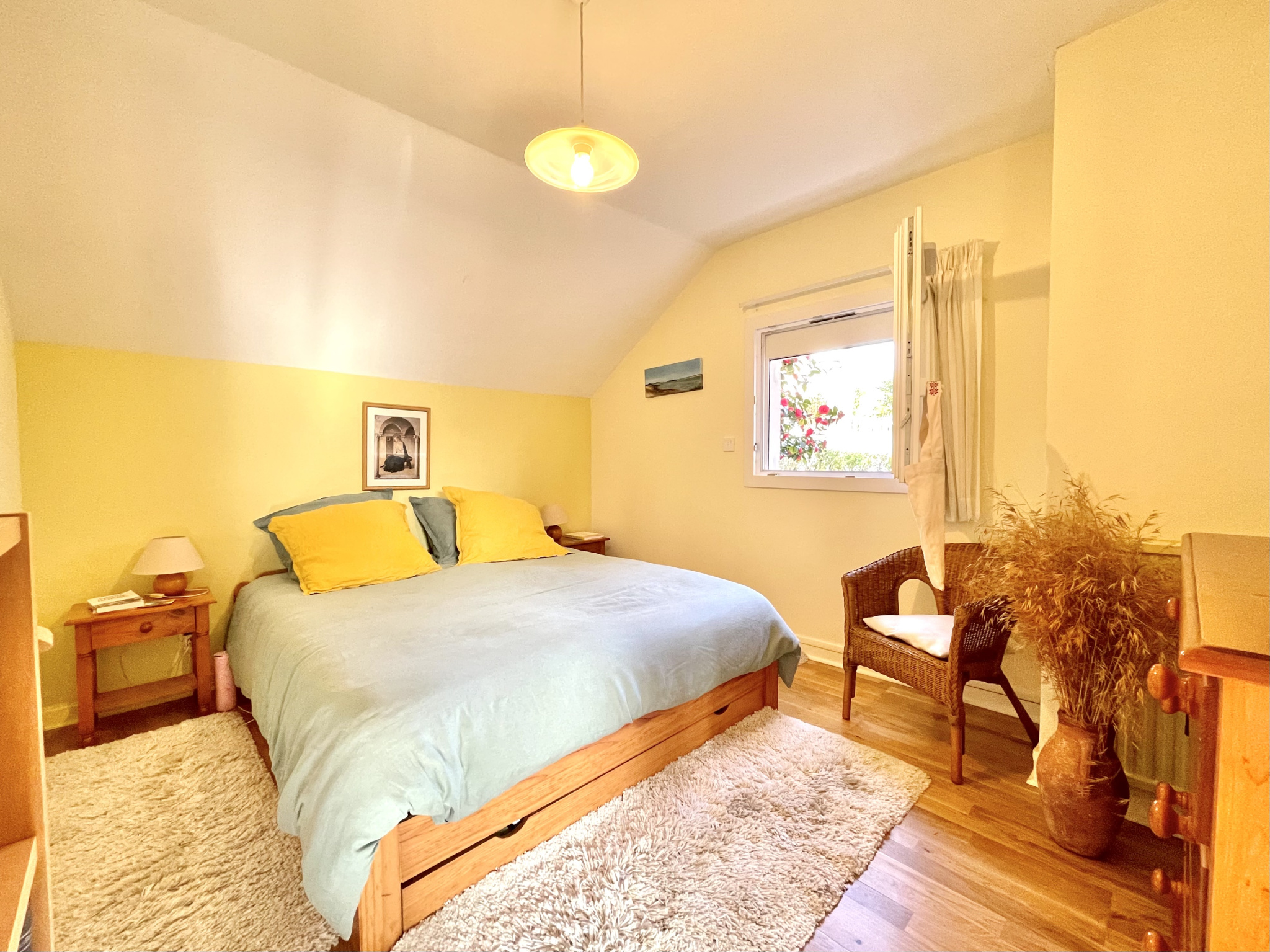 Uniquement chez Hérouville Immobilier, maison de plain pied de 105 m². Composée d'une entrée, séjour-salon, cuisine équipée, 3 chambres, bureau et 2 sde. Garage accolé. Terrain avec terrasse en bois au sud sans vis à vis. Intérieur particulièrement cosy et atypique. Les informations sur les risques auxquels ce bien est exposé sont disponibles sur le site Géorisques